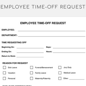 Employee Time Off Request Template Vacation Request Form Pto Etsy Ireland
